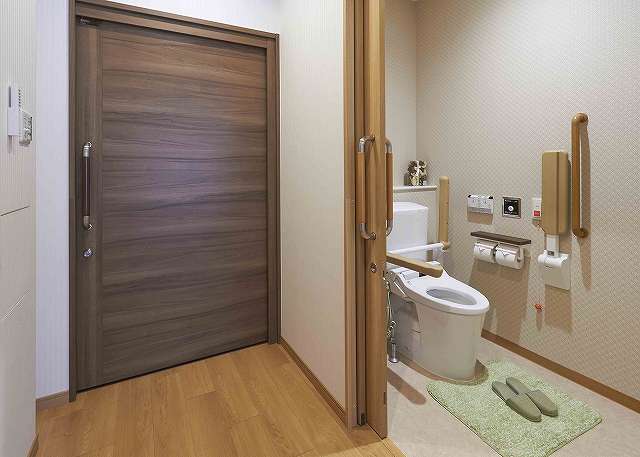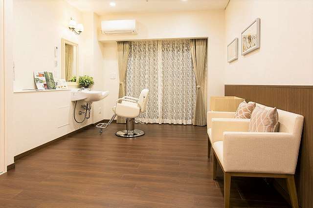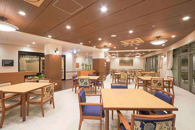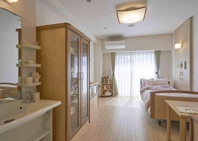居室設備:介護用電動ベッド/寝具/照明/冷暖房/クローゼット/洗面所/ 防火設備(スプリンクラー、熱感知器、非常時放送スピーカー)/トイレ(洗浄機能付)/防炎カーテン/ケアコール/テレビ回線/電話回線