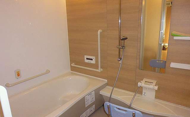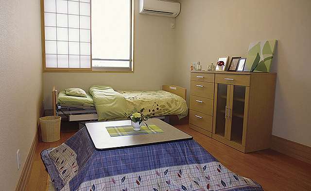 居室設備:介護用電動ベッド、寝具、冷暖房、トイレ(全居室完備、洗浄機付)、温水器付洗面所、照明、消防設備(自動火災報知設備、スプリンクラー)、テレビ回線、ナースコール(2か所/トイレ・ベッド)