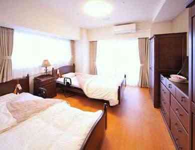 居室設備:トイレ(温水洗浄機能付)・洗面台(温水)・介護用電動ベット・ナースコール・冷暖房・収納家具