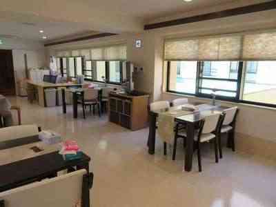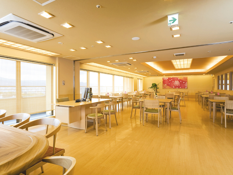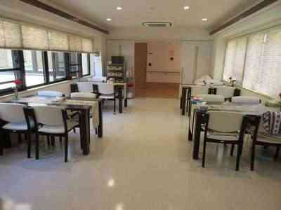 居室設備:テーブル/イス/介護ベッド/蛍光灯/インターフォン/温水暖房パネルヒーター/ IHヒーター付きコンパクトキッチン/ユニットバス、洗面化粧台、洗濯機バン、 温水洗浄トイレ、緊急呼び出しコール(ベッドルーム・トイレ・浴室)、 スプリンクラー、クローゼット、収納物入/24時間換気/外線電話回線/TV端子、 生活安心センサー、カーテン