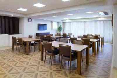 居室設備:介護用電動ベッド(寝具付)、ナースコール、車いす対応洗面台、温水洗浄機能付トイレ、チェスト、クローゼット、デスク、メモリーボックス、カーテン(レース・ドレープ)、エアコン