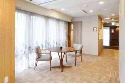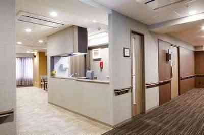 居室設備:介護用電動ベッド(寝具付)、ナースコール、車いす対応洗面台、温水洗浄機能付トイレ、チェスト、クローゼット、デスク、メモリーボックス、カーテン(レース・ドレープ)、エアコン