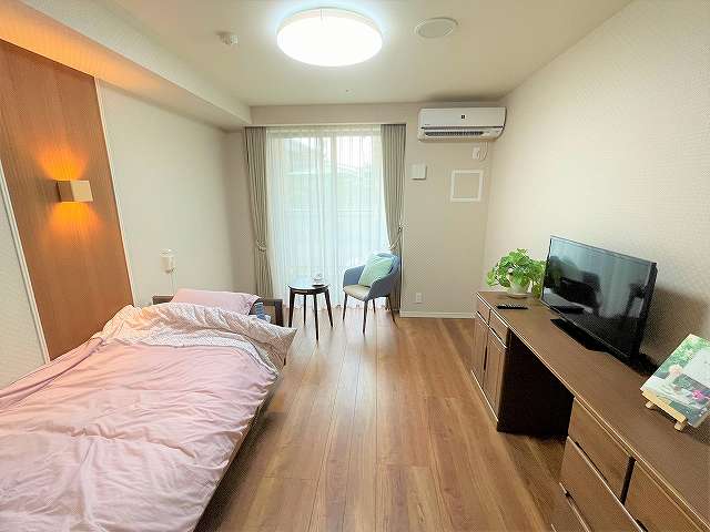 居室設備:電動ベット、寝具、照明、エアコン、クローゼット、洗浄機能付トイレ、温水器付洗面台、カーテン、ケアコール(2ヶ所)、防火設備(スプリンクラー、熱感知器、非常時放送スピーカー)、電話回線、TV回線
