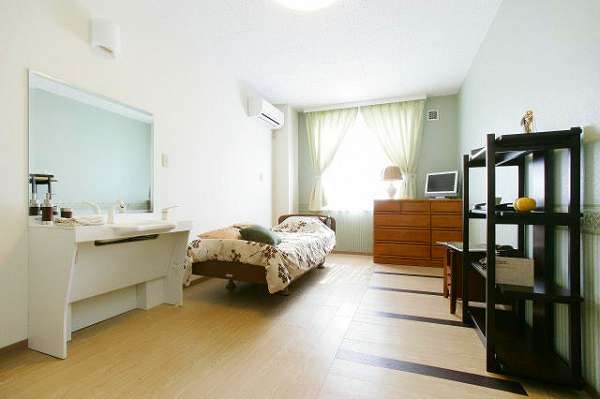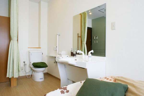 居室設備:トイレ、ケアコール、ベッド(電動介護用又は一般)、テレビ、洗面台、収納家具、エアコン、外線電話回線