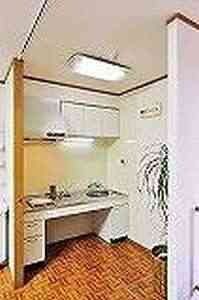 居室設備:冷暖房、下駄箱、物入、洗面台、洋便器、電熱器つき流し台、インターホン、電話、テレビ共聴線、ベランダ、ナースコール、介護室直通電話