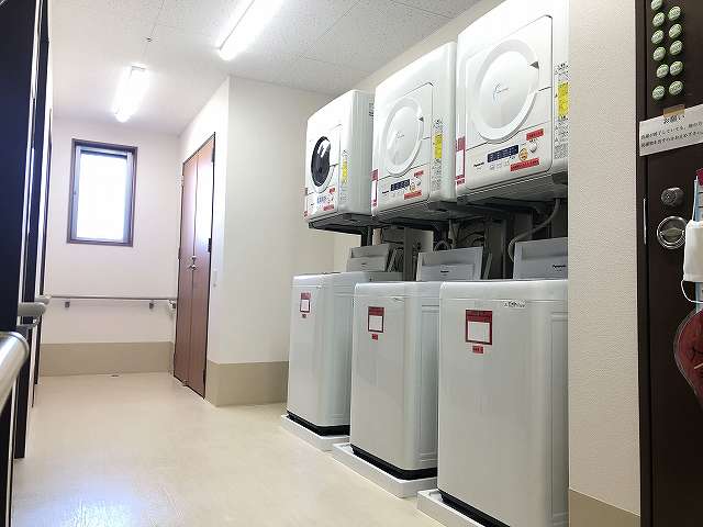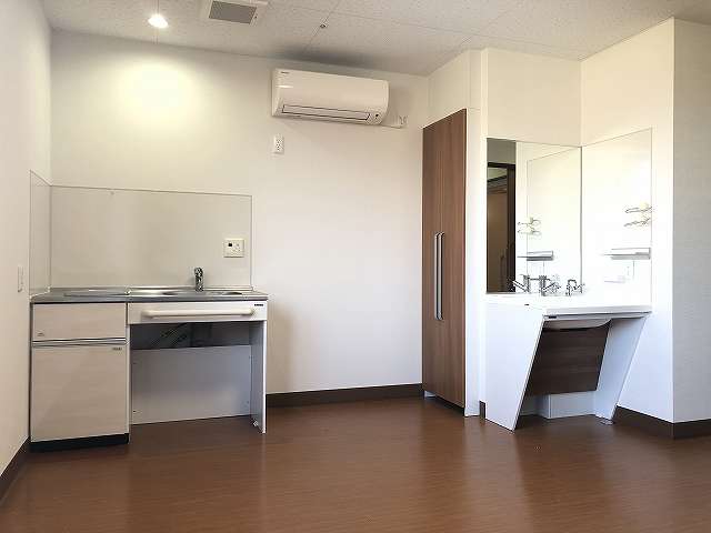居室設備:トイレ・洗面台・クローゼット・エアコン・照明・スプリンクラー・ナースコール・ミニキッチン(一部)・浴室(一部)・室内洗濯機置き場(一部)