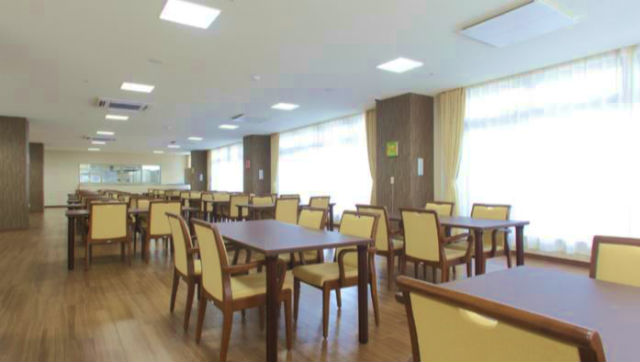 居室設備:想い出ボックス、フローリング調塩ビタイル(一部クッションフロア) 、 車いす対応洗面化粧台(引き出し水栓付)、電気式温水器、 トイレ(温水洗浄付、暖房・脱臭便座機能付)、 洗面・トイレ照明(人感センサー付)、手すり(トイレ)、クローゼット、 床暖房(電気式)、 電動式介護ベッド、寝具、居室照明(リモコン付)、ケア・ナースコール、 冷暖房エアコン、スプリンクラー、 非常放送設備、防炎カーテン、カーテンレール、カーテンボックス
