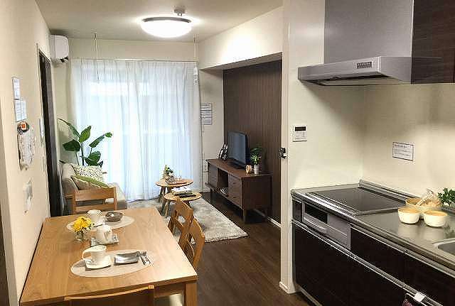 居室設備:キッチン(IHヒーター付)・エアコン・洗面化粧台・洗浄暖房便座付トイレ・緊急通報装置・コート掛け・玄関収納・収納・浴室(浴室乾燥暖房機能付)・自動火災報知機・洗濯機置き場・ベランダ物干しフック・室内物干しフック・録画機能付テレビドアホン