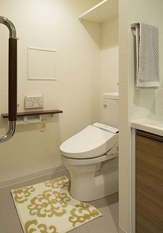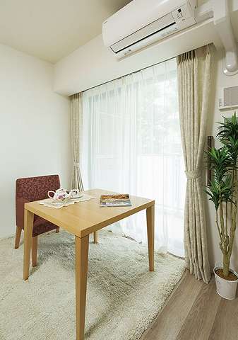 居室設備:セキュリティインターホン、緊急コールボタン、ライフリズムセンサー 、IHコンロ 、手動昇降キッチンラック、フレッツ光 、冷暖房エアコン 、サポートハンドル 、トランクルーム