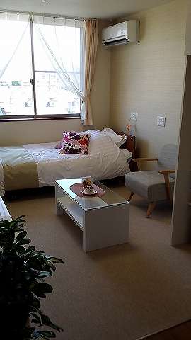 居室設備:シャワー付きトイレ・洗面所・緊急通報装置・テレビ回線・外線電話回線有り・エアコン・照明器具・カーテン・収納