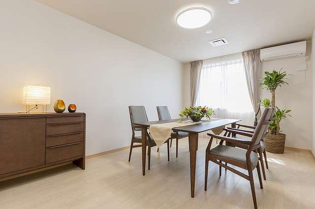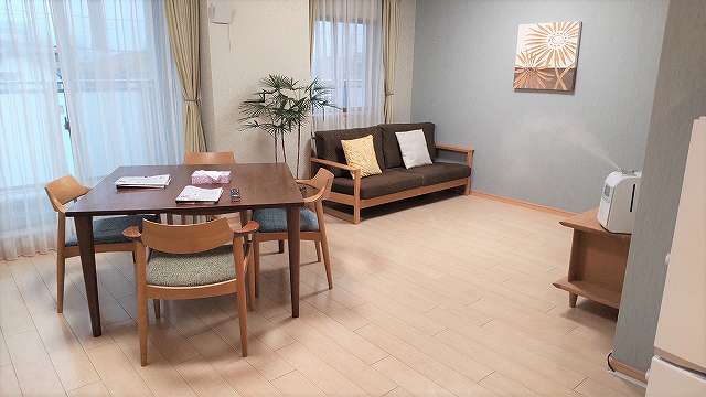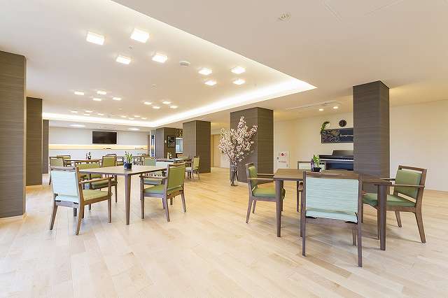 居室設備:電動ベッド、照明、エアコン、クローゼット、洗浄機能付きトイレ、温水器付洗面台、ケアコール(二ケ所)、電話回線、見守りシステム、防火設備(スプリンクラー、熱探知機、非常時放送スピーカー)、寝具、防災カーテン