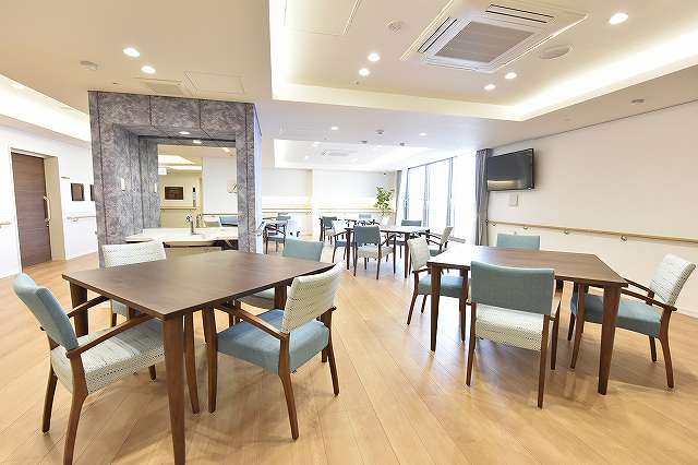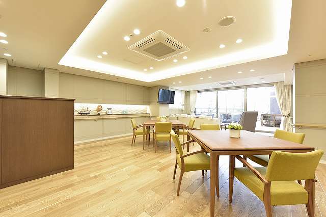 居室設備:電動ベット、照明、エアコン、クローゼット、洗浄機能付トイレ、温水機洗面台、防炎カーテン、ケアコール(2ヶ所)、電話回線、TV回線、見守りシステム、快眠システム、防火設備(スプリンクラー、熱探知機器、非常時放送スピーカー)