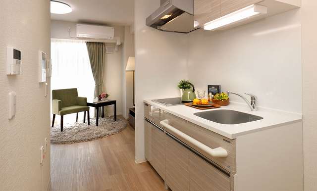 居室設備:キッチン、バス、トイレ、クローゼット、エアコン、床暖房、洗面台、緊急通報装置