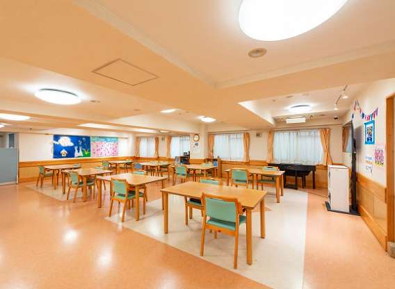 居室設備:ウォシュレット付トイレ、介護ベッド、クローゼット、エアコン、ナースコール、スプリンクラー。