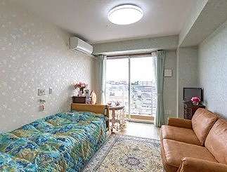 居室設備:介護用電動ベッド・エアコン・クローゼット・カーテン・洗面台・トイレ・ナースコール