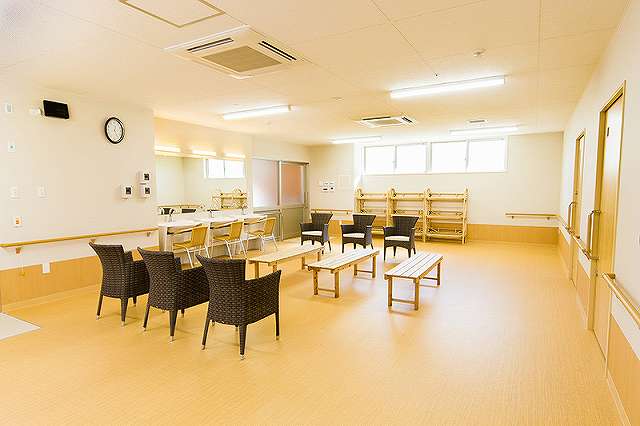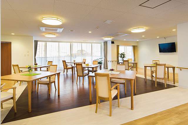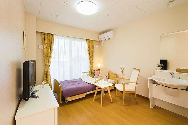 居室設備:エアコン、介護用電動ベッド、温水洗浄器付トイレ、洗面化粧台(車椅子対応)、ナースコール(2ヶ所)、収納設備、照明