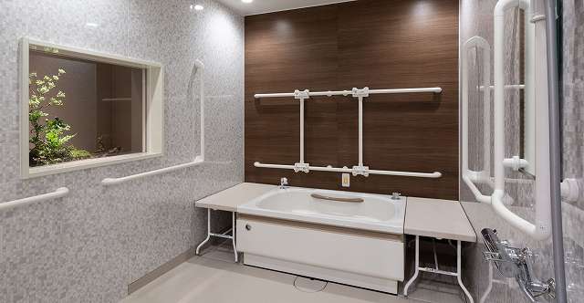 居室設備:エアコン、介護対応型電動ベッド(寝具付)、緊急コール、車いす対応型洗面台、温水洗浄機能付トイレ