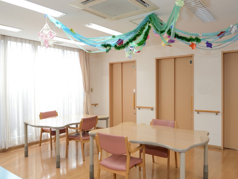 居室設備:エアコン、室内照明、カーテン、緊急時用コールボタン、収納