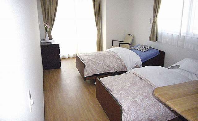 居室設備:居室内設備 ・エアコン・カーテン・介護ベッド・寝具・ナースコール・・トイレ(ウォシュレット)・照明・洗面台・スプリンクラー