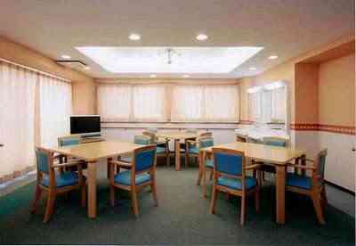 居室設備:介護用ベッド、クローゼット、エアコン、テーブルセット、緊急呼び出しボタン