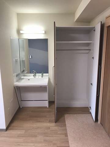 居室設備:トイレ・洗面・浴室(一部)・ミニキッチン(一部)・クローゼット・エアコン・照明・スプリンクラー・ナースコール・リズムセンサー(一部)・室内洗濯機置場(一部)