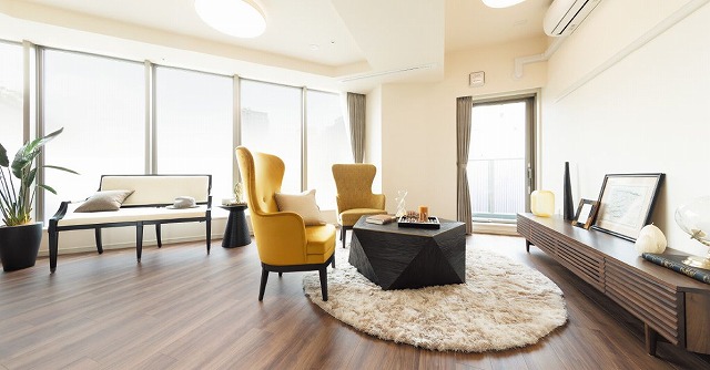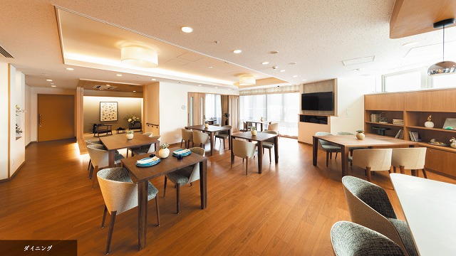 居室設備:収納家具、冷暖房、床暖房、天井照明器具 電動リクライニング式ベッド、洗面台、温水洗浄便座付トイレ 、カーテン、フットライト、コールボタン、スプリンクラー