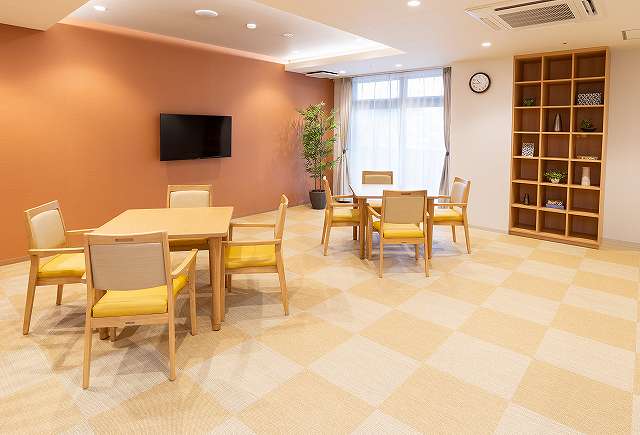 居室設備:介護用電動ベッド、寝具、収納、冷暖房、トイレ(全居室完備、洗浄機付)、温水器付洗面所、照明、消防設備(自動火災報知設備、スプリンクラー)、テレビ回線、ナースコール(2か所/トイレ・ベッド)