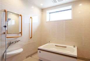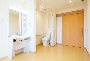 居室設備:トイレ(温水洗浄便座)、洗面、エアコン、緊急通報装置、、レースカーテン、テレビ回線、テレビカメラ設置