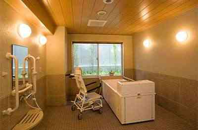 居室設備:トイレ、玄関には手すり、緊急通報装置、外線電話回線、テレビ回線、浴室(一部)、キッチン(一部)