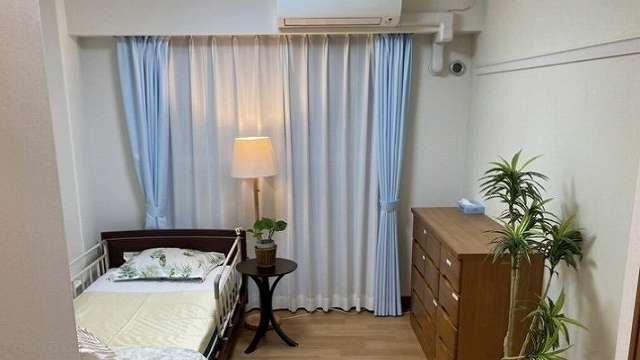 居室設備:ALSOKセキュリティ, 緊急通報装置, エアコン, クローゼット, 照明器具, カーテン, チェスト, 介護用電動介護ベッド
