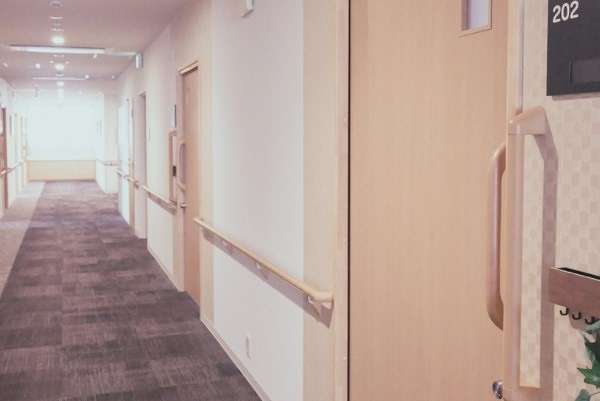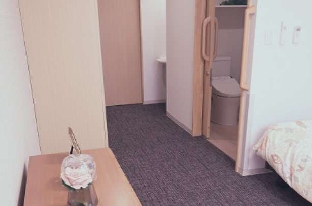居室設備:介護ベッド(3モータ)・エアコン・防炎カーテン・チェスト・収納・照明・温水機能付トイレ・洗面・スタッフコール