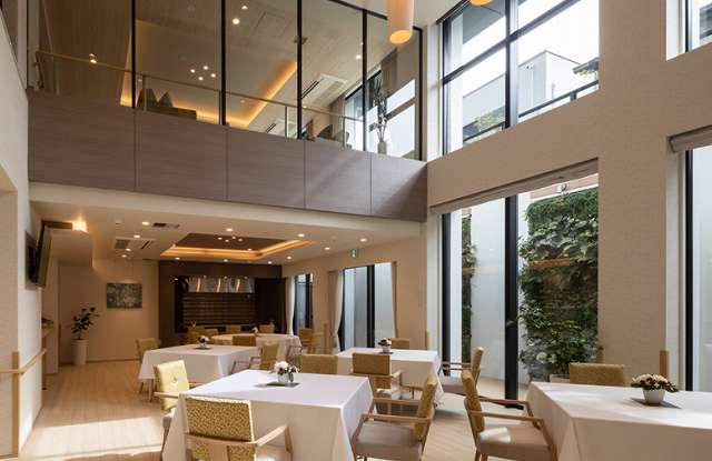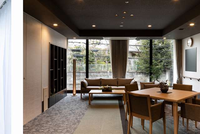 居室設備:エアコン、洗面台、温水洗浄機能付トイレ、室内照明、介護用電動ベット、カーテン、緊急コールボタン
