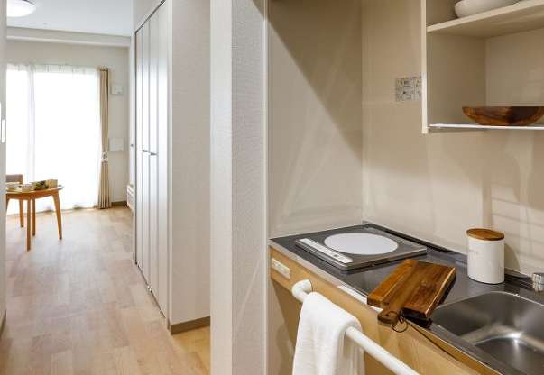 居室設備:浴室、洗面化粧台・トイレ、エアコン、バルコニー、玄関いす、ミニキッチン、テレビモニター付きドア本、緊急呼び出し装置