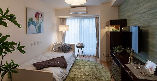 居室設備:エアコン、緊急コール、車いす対応型洗面台、温水洗浄機能付トイレ