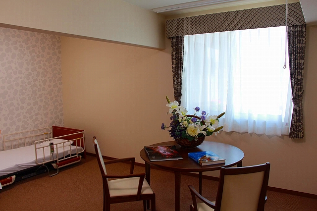 居室設備:エアコン、温水洗浄便座付きトイレ、洗面台、ナースコール、整理ダンス、室内物干し (ワイドタイプのみ)浴室、ミニキッチン
