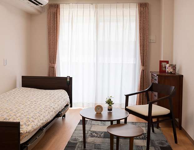 居室設備:介護ベッド・エアコン・クローゼット・カーテン・照明器具・トイレ・洗面台・緊急コール等