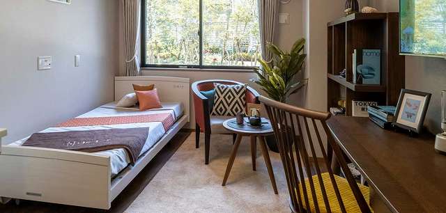 居室設備:エアコン、緊急コール、車いす対応型洗面台、温水洗浄機能付トイレ