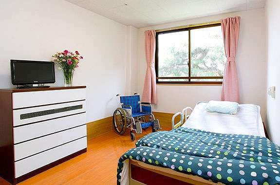 居室設備:フローリング・フラットフロア・引き戸式ドア・温水洗浄機能付きトイレ・車イス対応洗面化粧台・寝具一式・クローゼット・ナースコール・避難設備・防災設備・地上波アンテナ