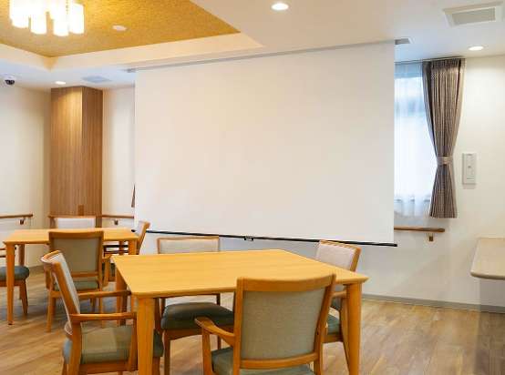 居室設備:エアコン、洗面台、温水洗浄機能付トイレ、ケアコール、スプリンクラー、介護ベット、収納