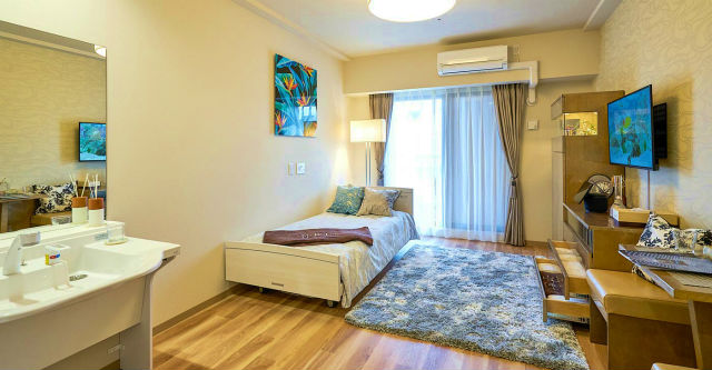 居室設備:エアコン、緊急コール、車いす対応型洗面台、温水洗浄機能付トイレ