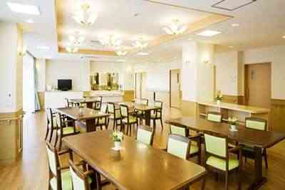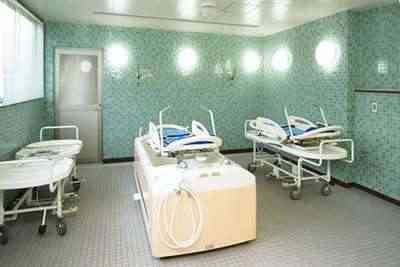 居室設備:電動リクライニング式ベッド・冷暖房完備・収納家具・木製キャビネット・テレビ・応接セット・カーテン・コールボタン・ウォシュレット付トイレ・洗面台・オゾン消臭装置・天井照明・フットライト