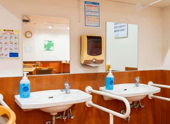 居室設備:洗面台・トイレ・介護ベッド・ナースコール・スプリンクラー・エアコン。
