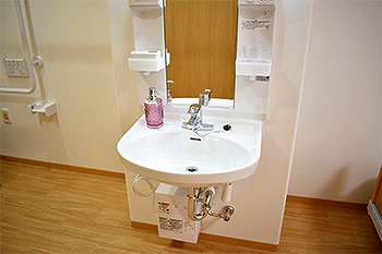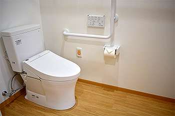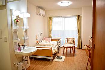 居室設備:防災カーテン、緊急コール、介護専用電動ベッド、車いす対応洗面台、温水洗浄トイレ、エアコン、収納