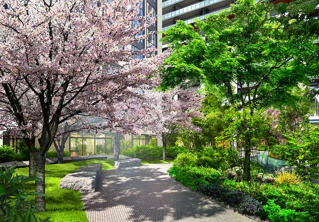 居室設備:キッチン、浴室、トイレ、洗面室、ウォークインクローゼット、トランクルーム、(一部タイプを除く)、床暖房、緊急呼出ボタン、全熱交換型換気システム、生活リズムセンサー、防犯センサー、バルコニー