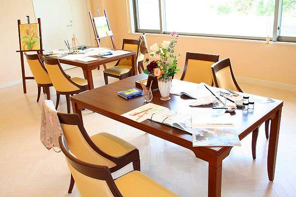 居室設備:エントランスホール、リビング&ダイニング(食堂)※1、機能訓練室、個人浴室、個人浴室(リフト付き)、特別浴室、ヘルパーステーション、健康管理室、ファミリールーム、アトリエ、ラウンジ、リビング 、ヘアーサロン(理美容室)、応接室、ランドリー、駐車場