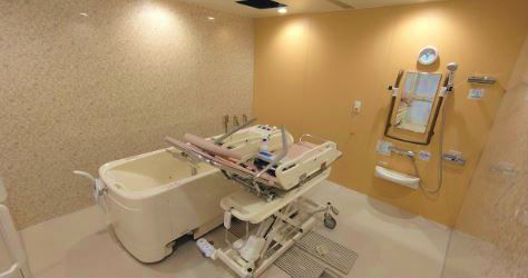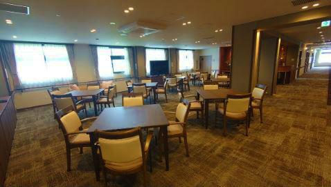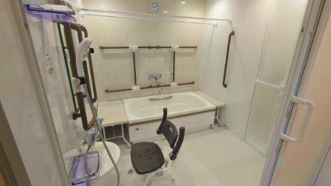 居室設備:介護ベッド(低床3モーター式)、エアコン、防炎カーテン、チェスト、収納、照明、温水洗浄機能付トイレ、洗面、スタッフコール
