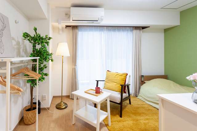 居室設備:A・Bタイプ (浴室なし):冷蔵庫置場、洗面台、トイレ、エアコン、緊急通報ボタン、フリーWi-fi完備ほか C・Dタイプ(浴室あり):ミニキッチン、冷蔵庫置場、洗濯機置場、洗面台、トイレ、浴室、エアコン、緊急通報ボタン、フリーWi-fi完備ほか