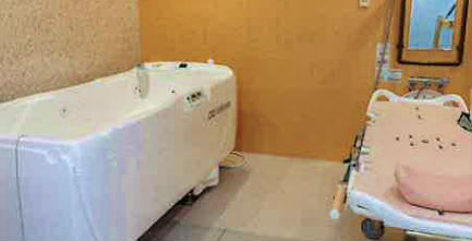 居室設備:ナースコール、介護ベッド、テレビ回線、洗面台、エアコン、カーテン、チェスト、長押レール