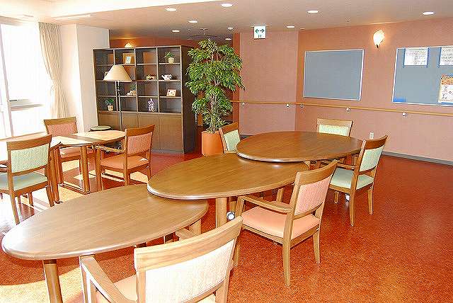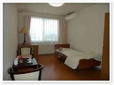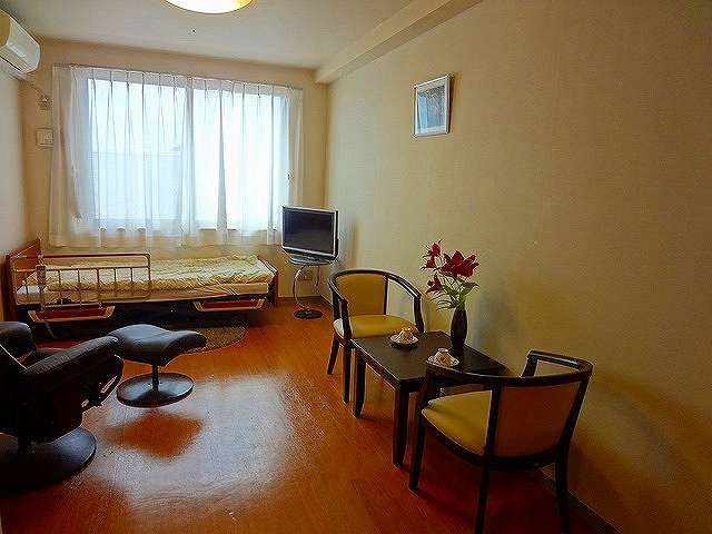 居室設備:バリアフリー設計(手すり設置・段差なし)、ウォシュレット付トイレ、エアコン、電動介護ベッド、ケアコール(ハンディコール)、洗面台トイレ、カーテン、洗面台
