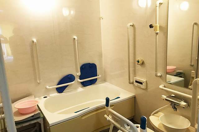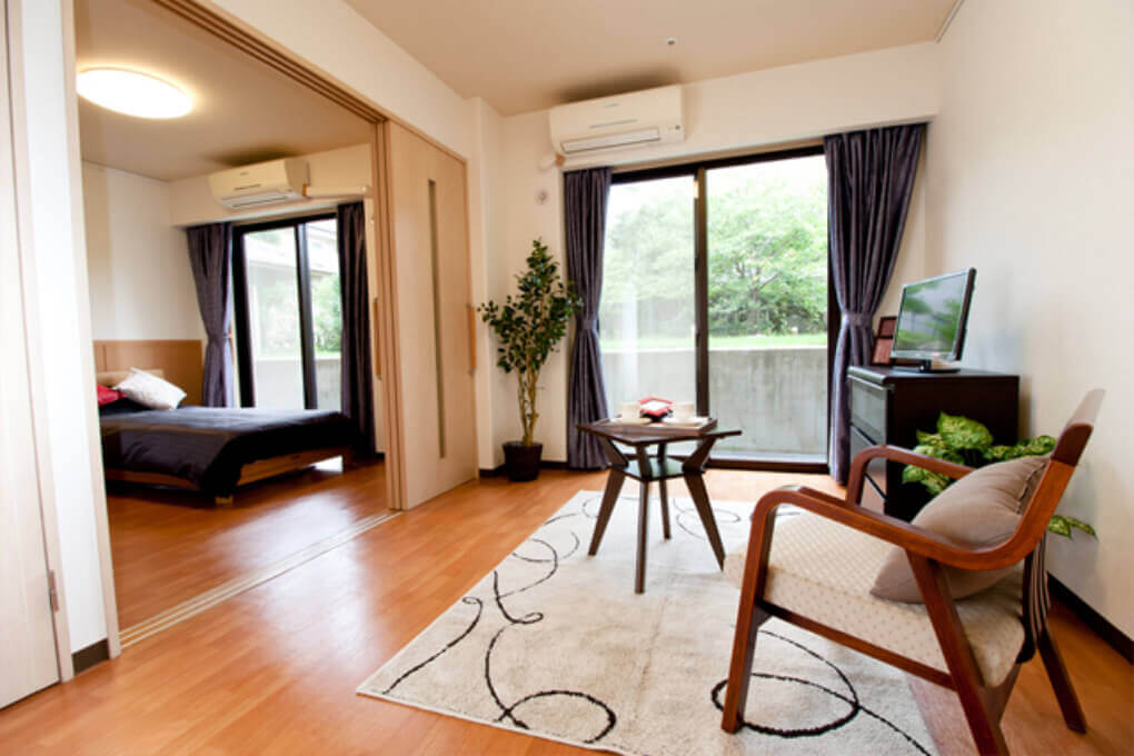 居室設備:温水洗浄機能付トイレ、洗面台、ケアコール、カーテン、冷暖房、介護用電動ベット